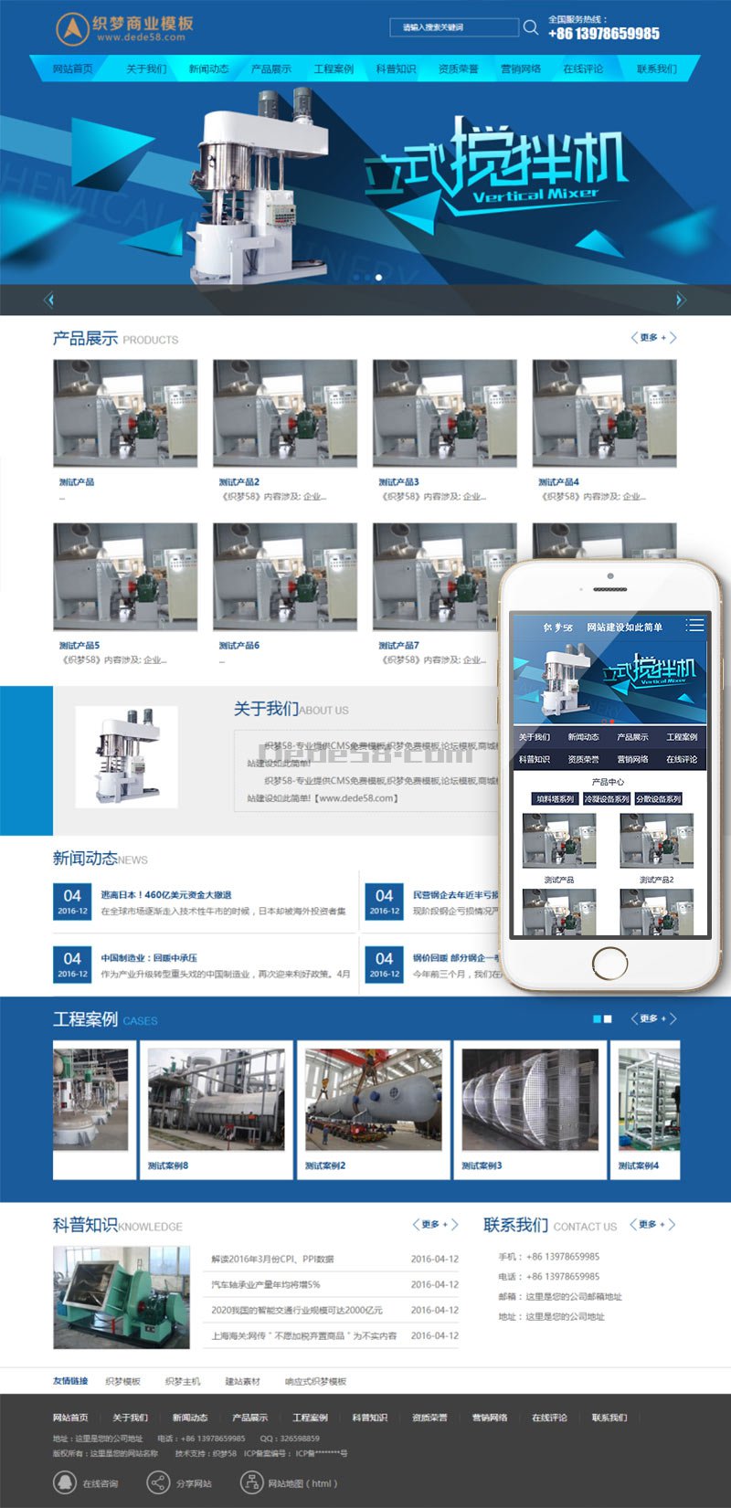 蓝色通用机械科技电子类企业网站织梦模板(带手机端数据即时同步)+利于seo优化